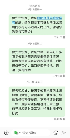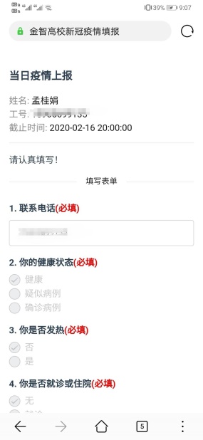 除在职教师外,我支部也积极对退休教师进行疫情普及和防疫情况通报工作。鉴于退休教师上网不便,一般采用电话通知的方式。退休教师有的只有固定电话,及时与家人联系沟通,保留备用手机号码,并及时传达学校各项政策要求,对退休教师进行防疫知识普及。积极推进“今日校园”系统在线申报,以信息化助力成员每日健康监测工作。对于退休不方便网上填报的老师,支委通过电话和短信了解具体情况后,进行支部帮助网上填报,确保每一位老师都按时上报,这样不仅可以每天了解成员的身体健康状况,还可搜集到其家属健康状况及居住周边社区的防疫情况,为学校和上级部门及时掌握相关情况提供数据。
