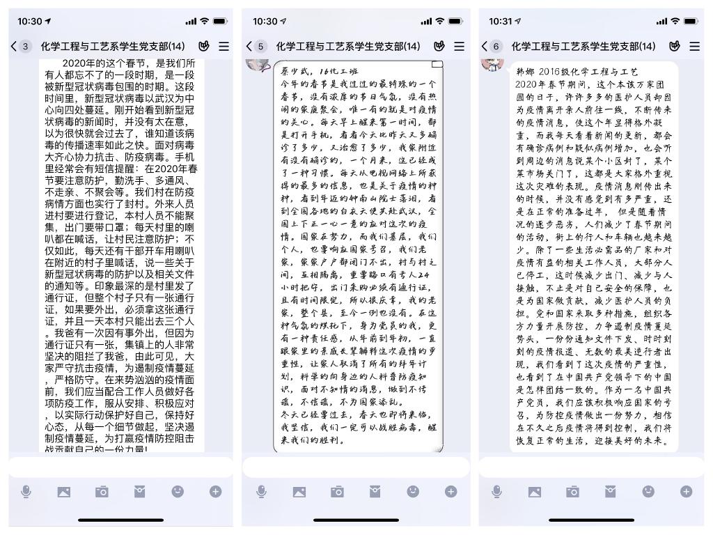 本网讯 在疫情防控的特殊时期,为发挥支部战斗堡垒作用和共产党员先锋模范作用。自2月初以来,化学工程与工艺系员工党支部书记积极传达党中央、省教育厅和学校应对疫情防控的文件、通知,宣传疫情防护知识。并利用网络开展一系列党员活动,共同抗击疫情。