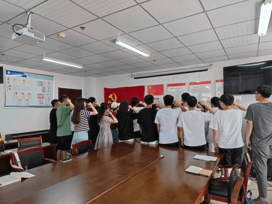 座谈会后,全体党员面对党旗,集体宣誓,共同重温入党誓词。