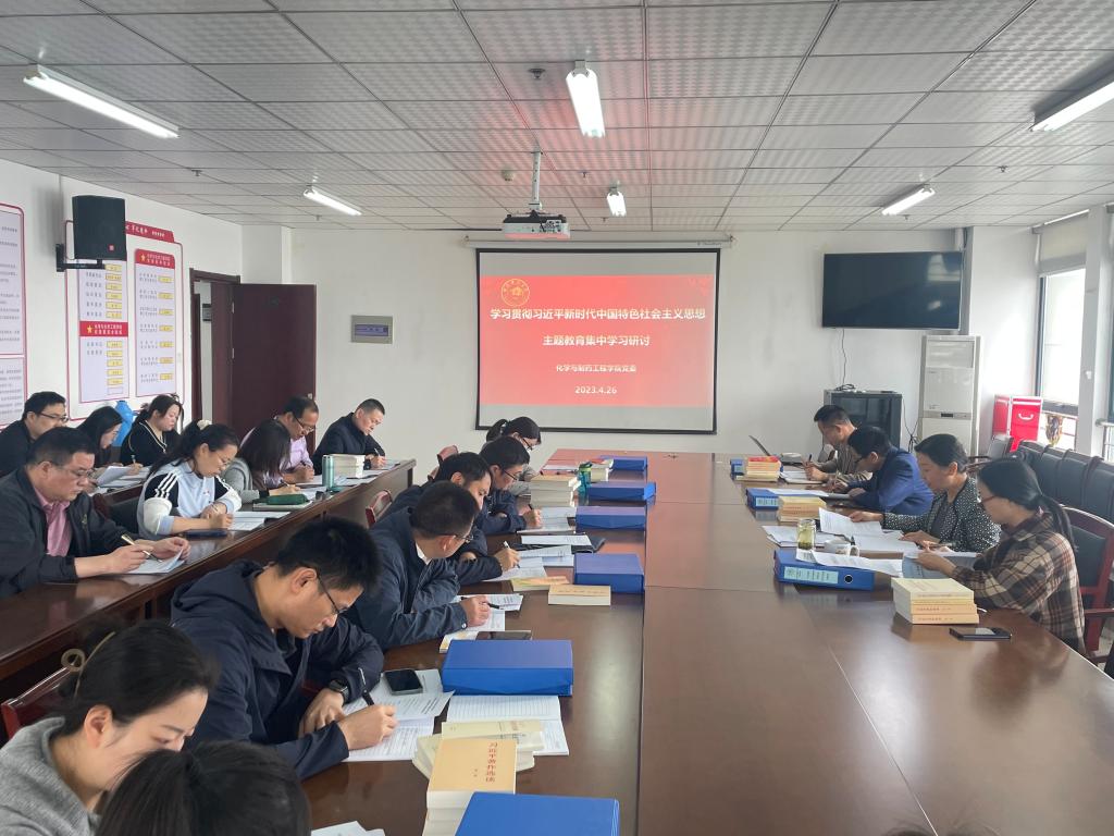 本网讯 4月26日,化学与制药工程公司党委在锦绣校区行知楼1402室举行学习贯彻习近平新时代中国特色社会主义思想主题教育集体学习研讨会。公司党委委员、纪委委员、支部书记、支部委员参加了会议,党委书记李红主持会议。