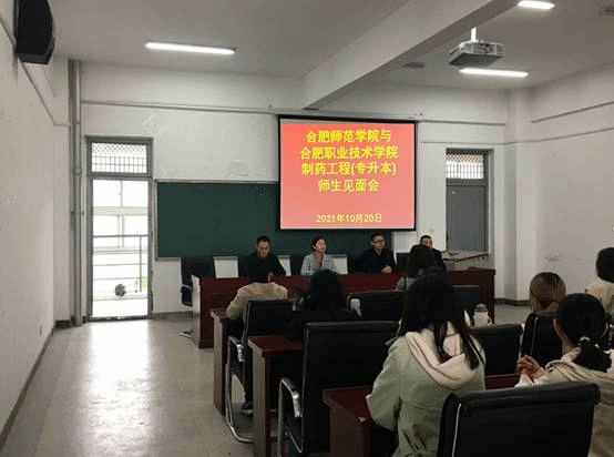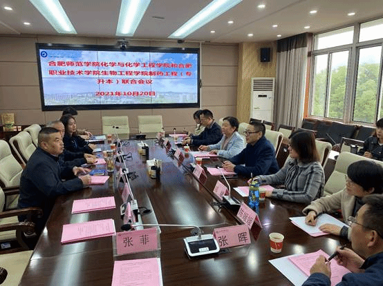 本网讯 10月20日,为进一步落实好联合培养单位本科生工作,化学与化学工程公司党委书记李红、经理董华泽、副经理朱金苗,制药工程系主任郑斌,部分教学及行政管理人员,前往合肥职业技术学院开展制药工程(专升本)本科生联合培养工作推进会。合肥职业技术学院生物工程学院书记汪春荣、经理刘修树、药学化学教研室主任范高福带领相关教职人员参会。
