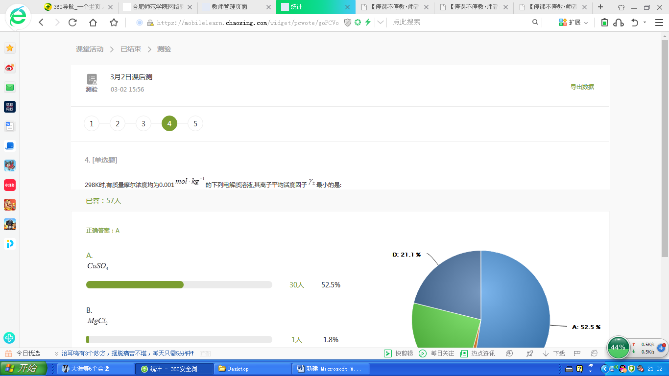 突如其来的疫情,让全程线上教学成为了新学期新的教学模式,虽然开课前我做了很多准备工作,但对我而言,线上教学仍然是新鲜事物,实际运行中或多或少地存在一些问题,可我却惊喜地发现,曾经课堂上比较沉默的同学们,化身了“问题少年”,时空的距离反而让我们的沟通变得更加便捷。同学们高涨的学习热情将不断激励着我不忘初心,牢记使命,在这场疫情防控阻击战中,我将继续站好属于我的这班岗。