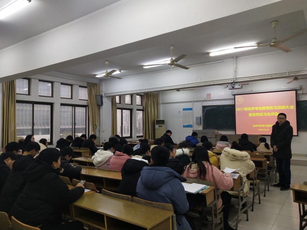 本网讯 1月3日上午八点半,化学与化学工程学院于锦绣校区博约楼310教室召开了2017级化学专业教育实习总结暨优秀实习生评选会,化学与化学工程学院经理董华泽教授、化学教育系全体教师及2017级化学专业全体同学参加了会议,会议由化学教育系主任凌波主持。