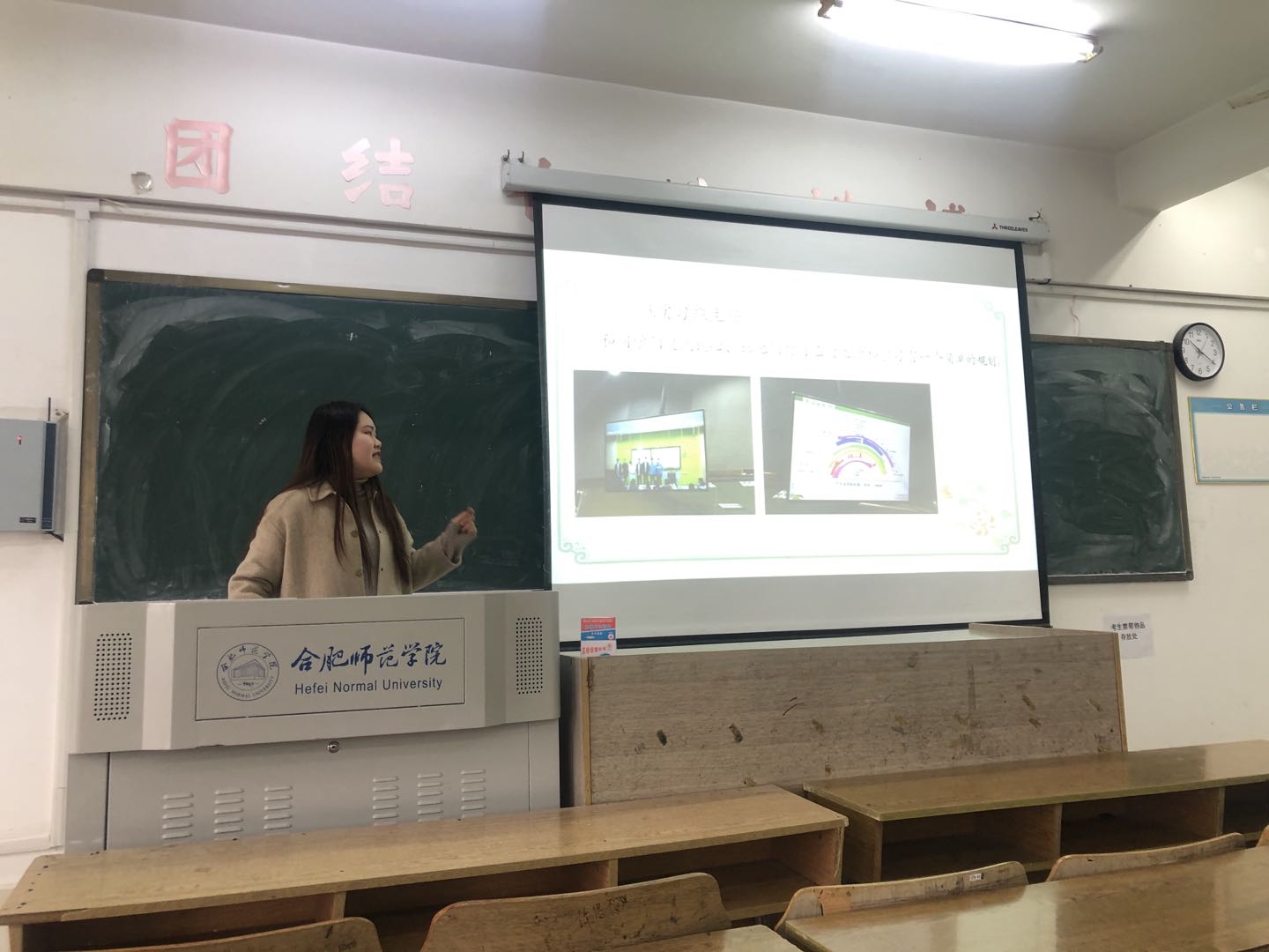 随后,各实习小组推荐的十位优秀实习生代表轮流上台汇报,交流各自的感受与心得。整个汇报分为两部分进行。第一部分:实习生通过十分钟的微课展示,展现了各自的教案设计和教学风格。第二部分:实习工作和实习心得汇报。实习同学纷纷指出实习让他们深刻地感受到了作为一名教师的不易,也体会到了教师身上肩负的责任与应有的担当。同时实习也让他们积累了一定的班级管理经验,提升了教学技能。