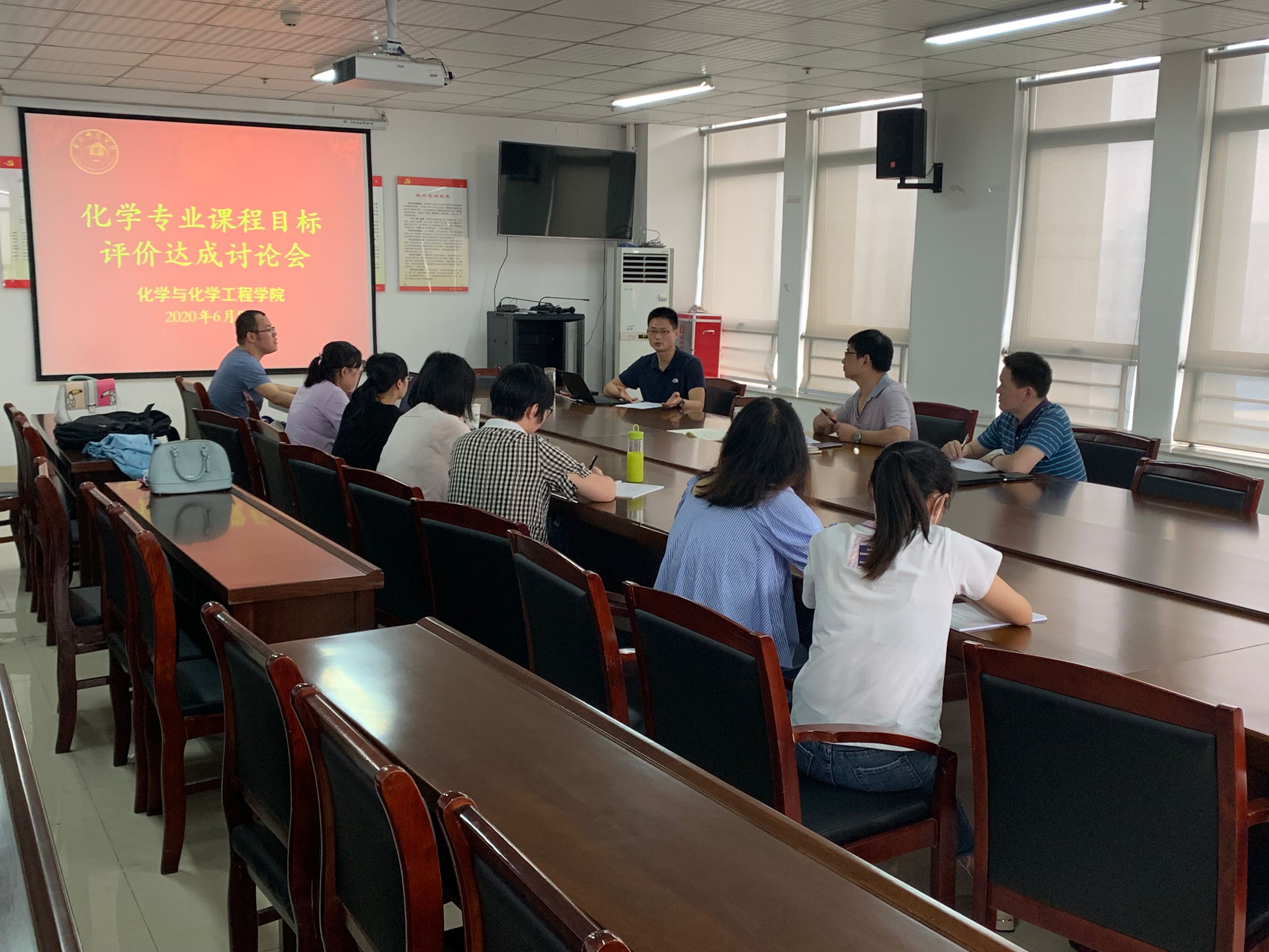 随后,各位老师依据2018年版化学专业培养方案,以课程大纲为依据,通过课程分析从课程目标达成、课程存在问题及改进措施等方面,以集体研讨形式进行交流。会上,全面核对了化学专业专任教师所授课程的课程大纲和课程分析报告,围绕课程目标、课程内容、考核方式及成绩评定等方面,进行了深入而热烈的交流与探讨。