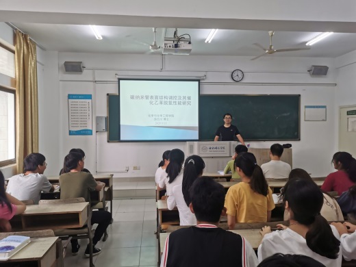9月11日下午,“行知讲堂”学术报告在锦绣校区博约楼212教室举行。本场报告由化学与化学工程学院饶日川副教授主讲,主题为“碳纳米管表面结构调控及其催化乙苯脱氢性能研究”,化学工程与工艺专业员工聆听了学术报告。
