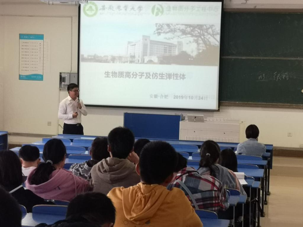 10月24日,安徽农业大学博士生导师、生物质分子工程中心主任汪钟凯教授,合肥工业大学博士生导师张洪斌教授受邀公司分别作题为《生物质高分子及仿生弹性体》《酶工程——绿色制药之源》的学术报告。讲座在锦绣校区逸夫楼A304教室举行,讲座由化学与化学工程学院制药工程系主任郑斌主持,制药工程专业教师、员工一同聆听学习。