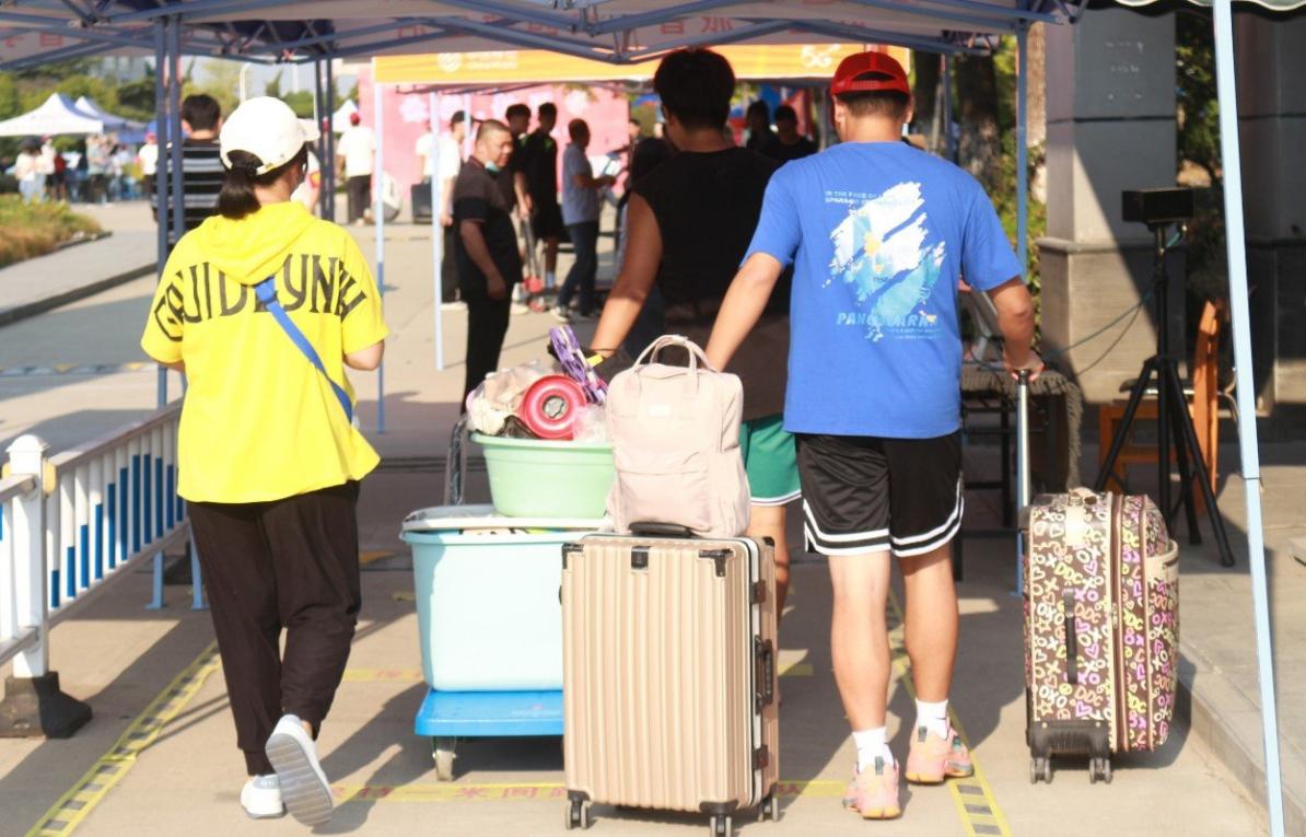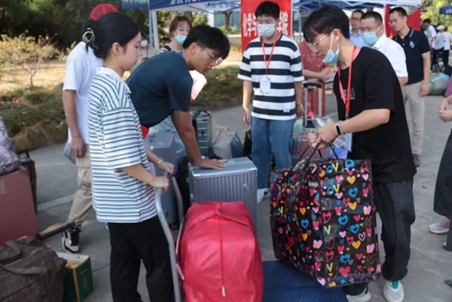 院员工会成立迎新生志愿服务队,用学长学姐的热情、志愿者的爱心去迎接每一位新同学的到来,从东门到核酸检测、宿舍楼、博约楼报到处,处处涌动着他们忙碌的身影,拉皮箱、搬被褥和抬行李,忙得不亦乐乎。