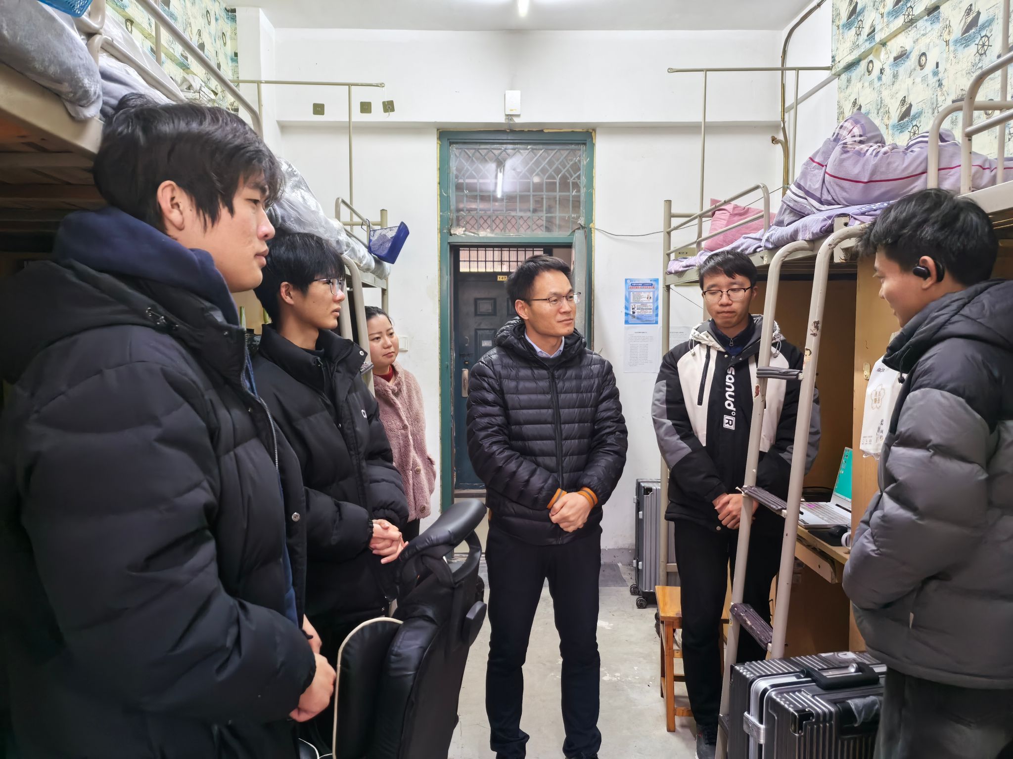 本网讯 新学期伊始,为深入了解员工思想动态,促进员工以良好的精神面貌投入新学期的学习和生活,2月15日和16日,tyc8722太阳集团领导带领辅导员深入员工宿舍进行走访,为同学们送去关爱与温暖。