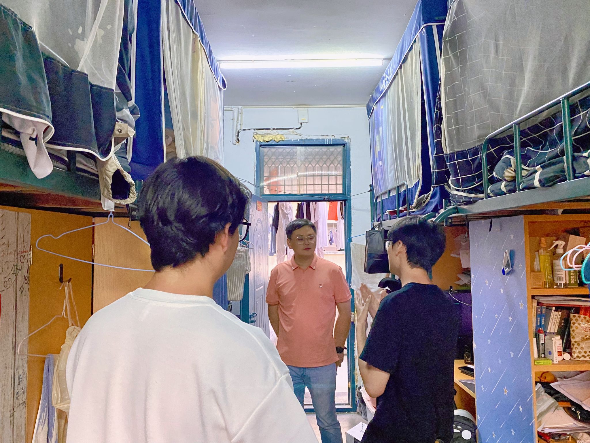 5月12日晚,化学与制药工程公司党委书记刁文彬、党委副书记朱晓熠、毕业班辅导员一同前往2025届毕业生宿舍,开展走访慰问活动。