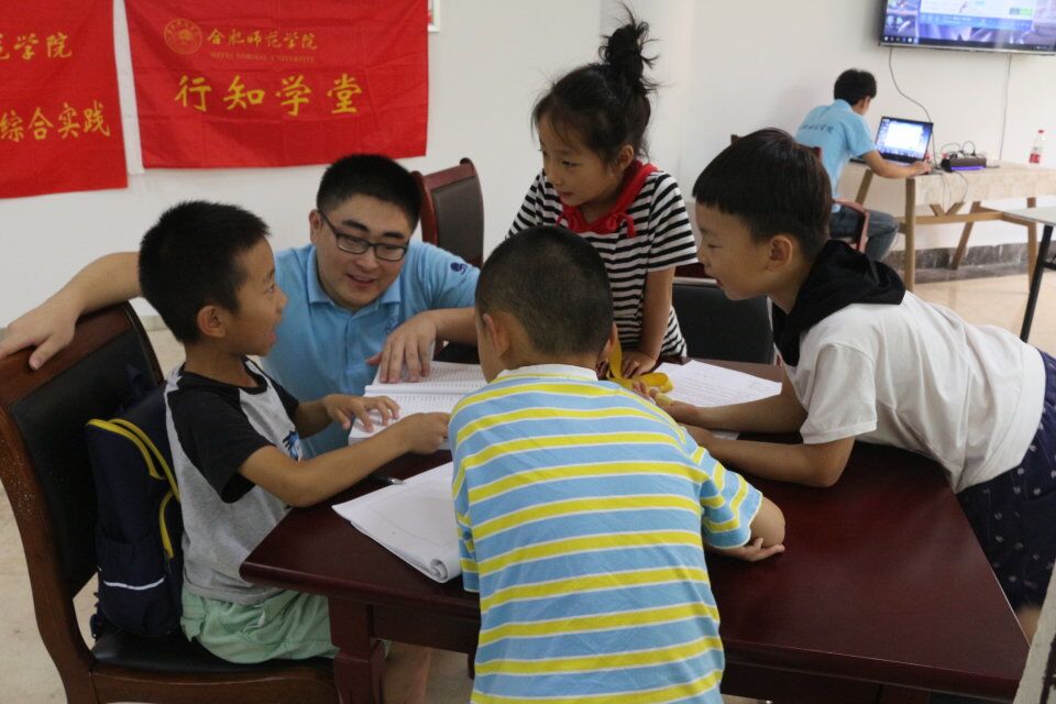 7月11日,该学堂在南湖春城居委会党群服务中心正式开班。来自三个学院的18位小先生、辖区内的24位小学员组成了春城行知学堂。