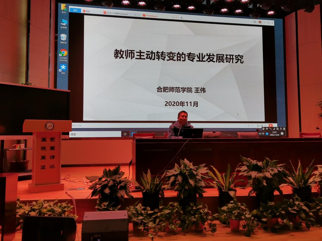 本网讯 为服务附中教研工作,指导员工职后发展,11月30日下午,化学专业教师王伟前往附中开展题为《教师主动转变的专业发展研究》的专题讲座。化学专业教师许俊翠教授,附中校领导邵忠德、粱贺,附中青年教师等100余人参会。
