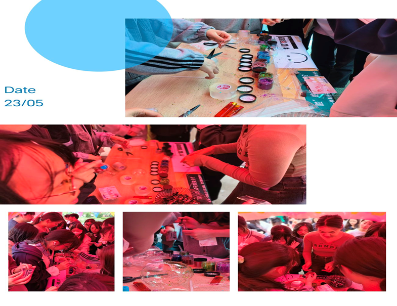 活动中,同学们用纳米胶粘合成基本形状,并往内散入五彩的闪粉点缀,放入吸管填充纳米胶形成透明的球体,同学们吹出的一个个气球就像他们的梦想一般慢慢成真。将纳米胶吹成气球的过程中同学们不断地呼气吹气,这一定程度上让同学们感到解压,至此达到心理健康节的目的。活动期间有很多同学都积极参与了解压小游戏,拿着通关卡完成一个个游戏后获得印章,通过游戏获得快乐,换得精美小礼品,同时释放压力。