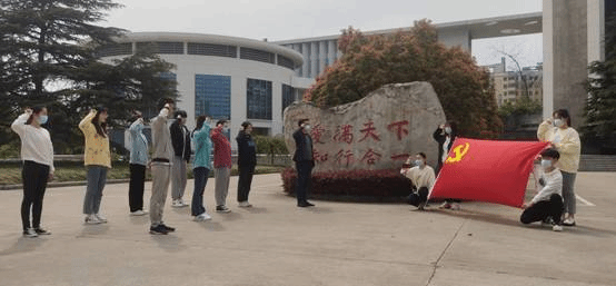 秉承“爱满天下、知行合一”的校训,员工党员在校训石前,举起右手,以铿锵有力的声音进行入党誓词宣读。意寓履行党员义务,执行党的决定,为人民教育事业奋斗终身。(化学与化学工程学院:王庆林)