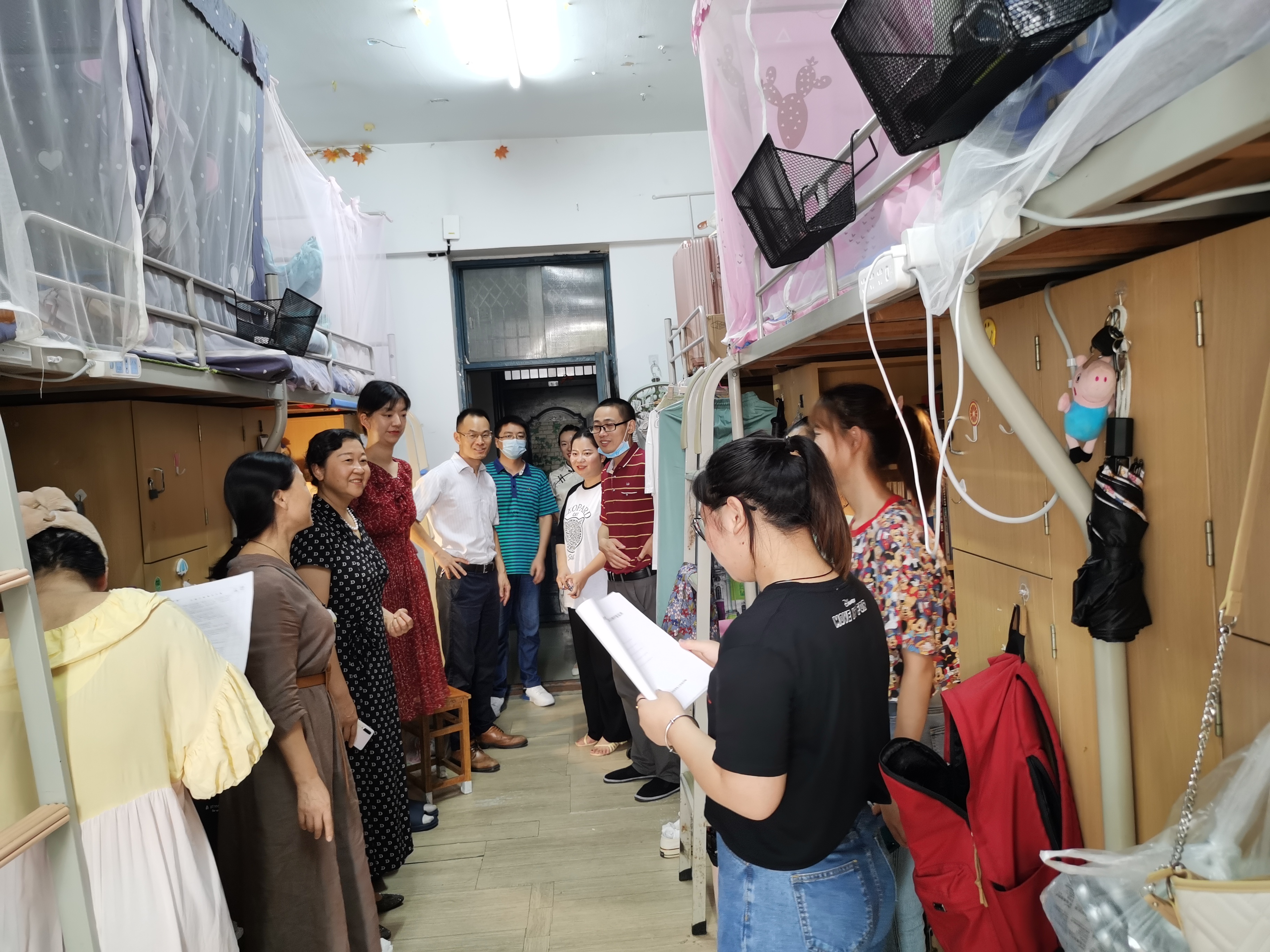 每走访一个宿舍,学院领导代表学院全体教职工欢迎大家带着新气象返校,询问了员工们的适应情况、暑期实践、本学期个人规划等方面的工作,向同学们宣传了预防电信诈骗相关工作,强调宿舍卫生、安全用电等情况重要性。