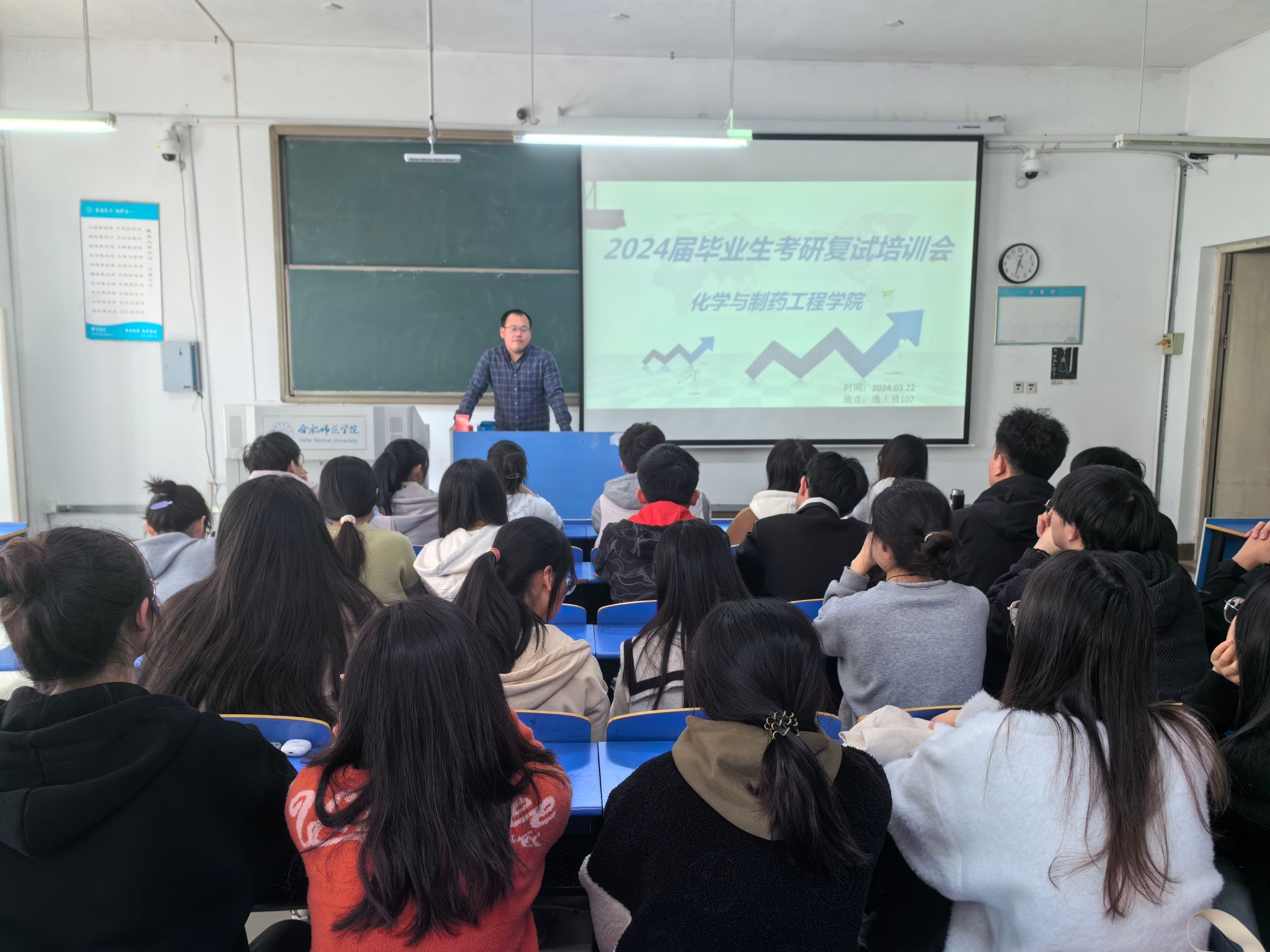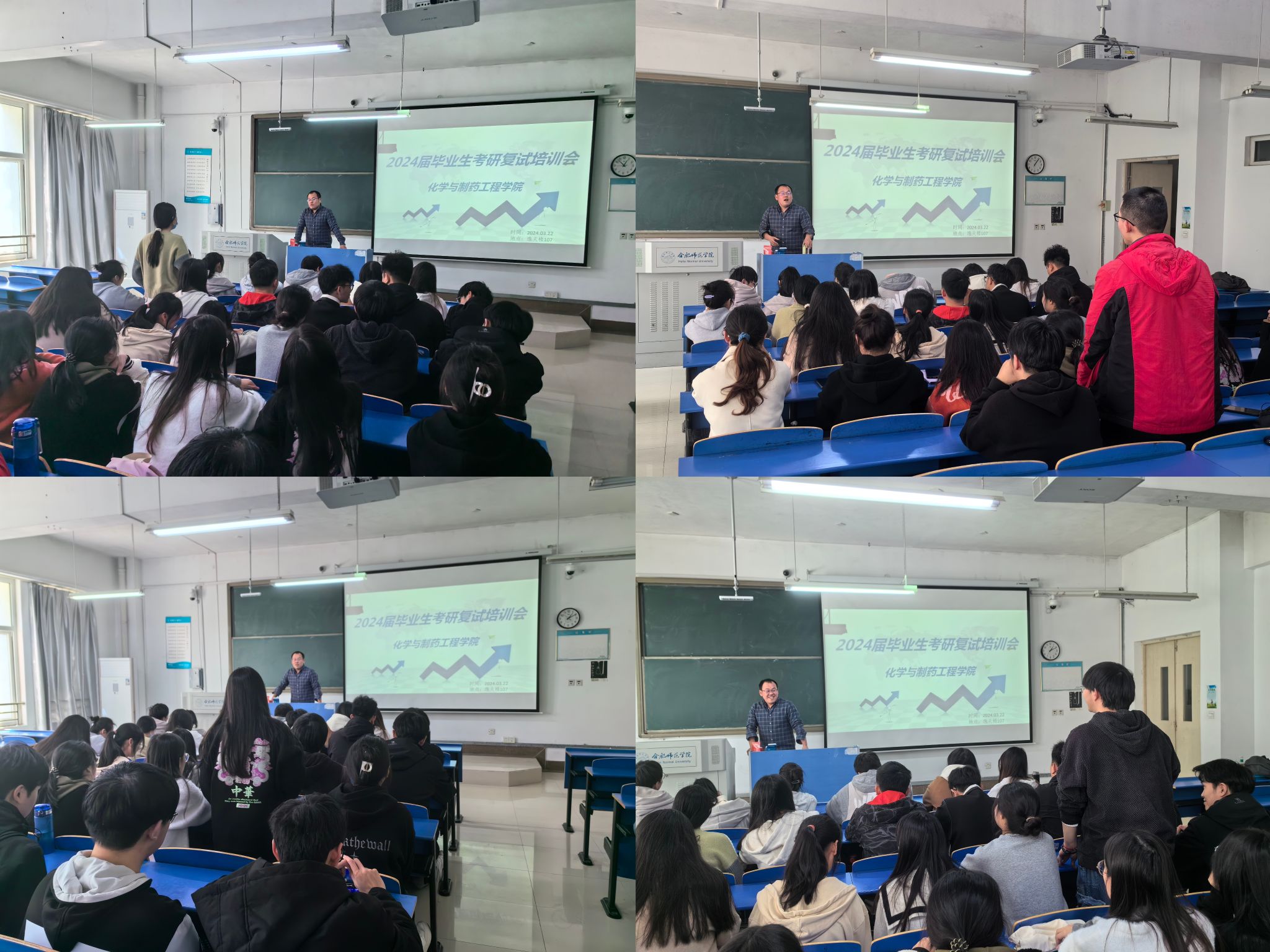 会上,王骏老师首先介绍了简历及邮件编辑的重点和要点,强调突出专业实验技能、科研能力以及个人技能等,再从考研复试的流程、经常出现的问题及应对方式等方面对同学们进行了详细地指导,建议同学们在面试时不要紧张,抓住问题的重点进行回答,表达流畅、扣题严谨。