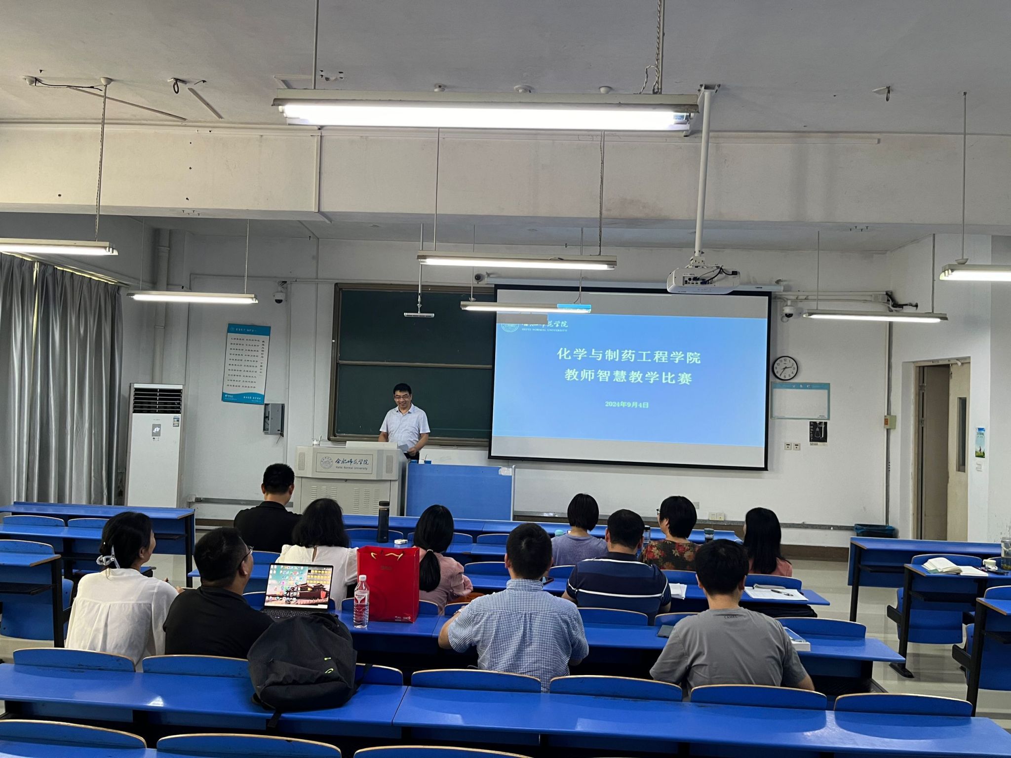 2024年9月4日,tyc8722太阳集团在锦绣校区逸夫楼A107教室开展院内师范专业教师智慧教学比赛。副经理董雄辎教授出席比赛。本次比赛由化学教育系主任凌波主持,师范专业全体教师参赛并观摩。