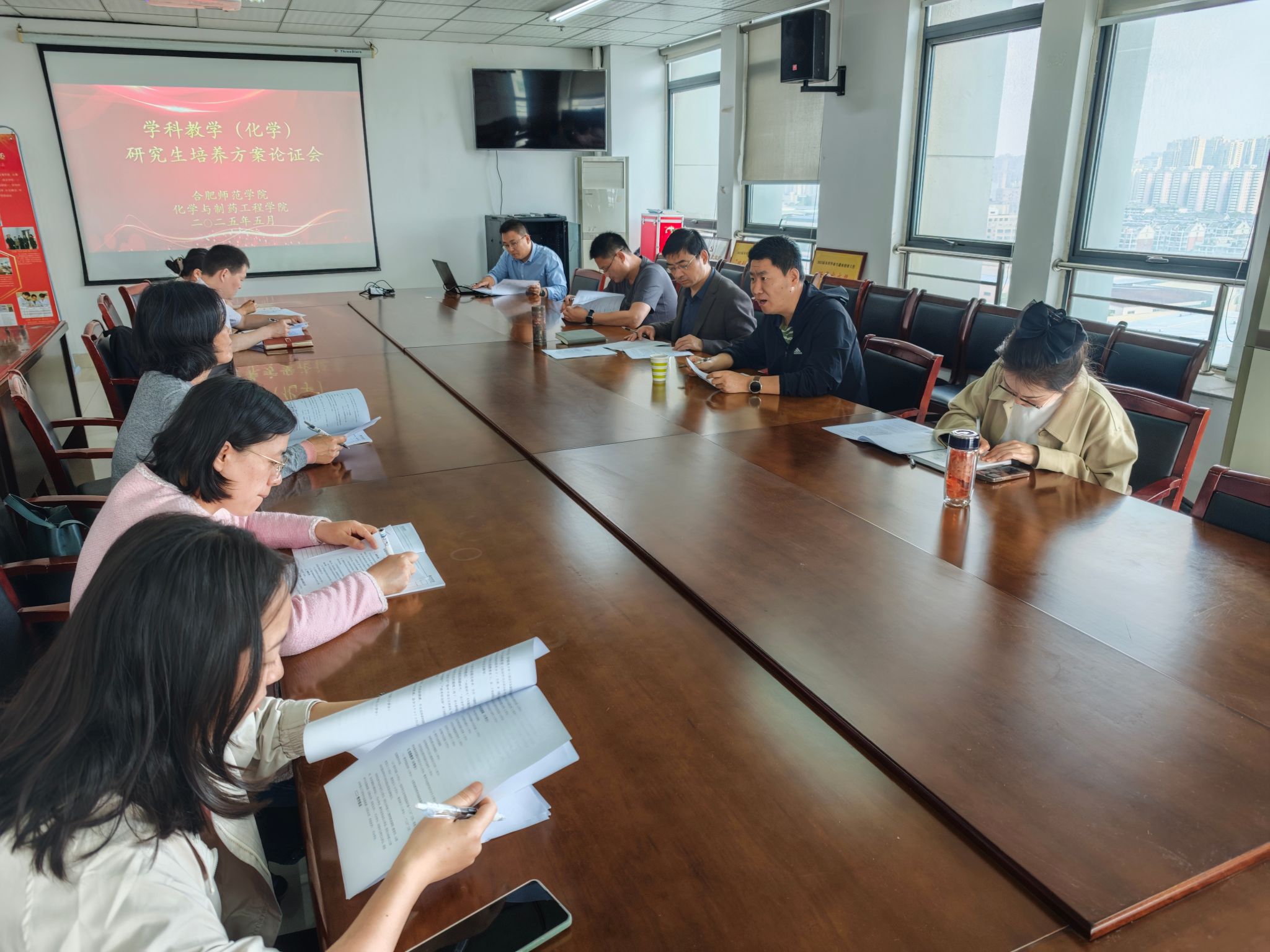 本网讯 5月9日上午,tyc8722太阳集团在行知楼1402会议室召开学科教学(化学)2025年版培养方案修订论证会。安徽省教科院化学教研员朱成东,合肥市包河区化学教研员、公司员工李杨,部分研究生导师代表、研究生代表参加论证,论证会由副经理董雄辎主持。