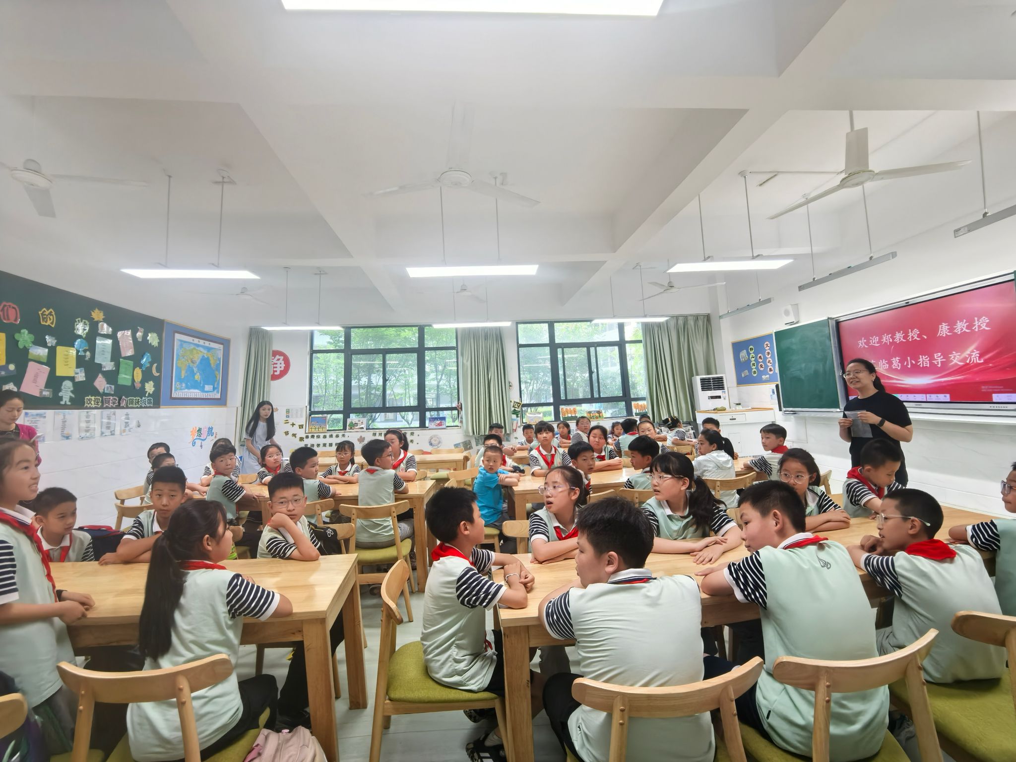 在望湖小学洞庭湖路校区,全体科学教师与制药工程系教师团队以中药学为主线的科普体系构建流程进行了深刻的交流讨论,就如何开展课程开发、资源共享、团队培训等进行了研讨,并建立了“中医药文化”教师团队。