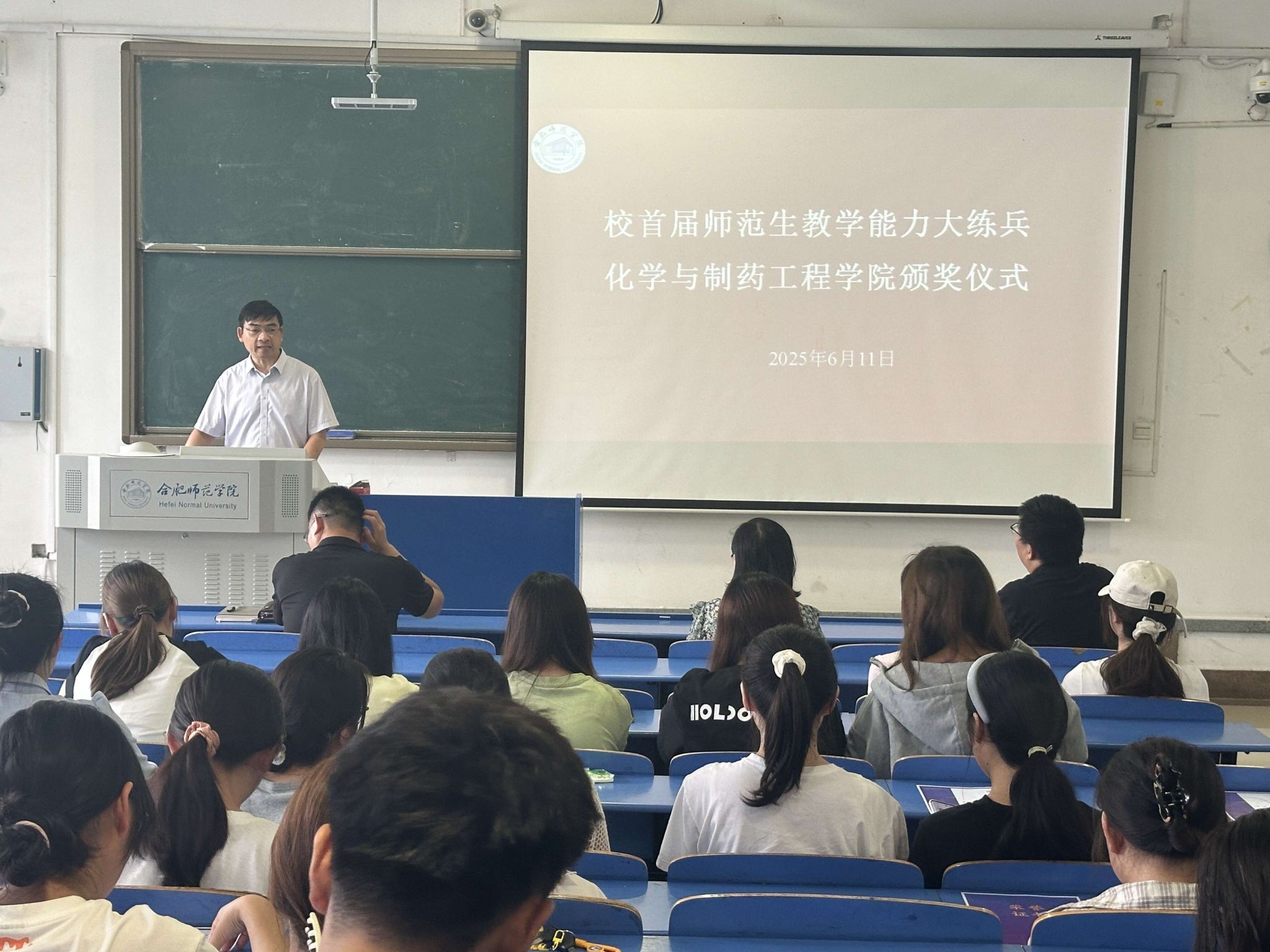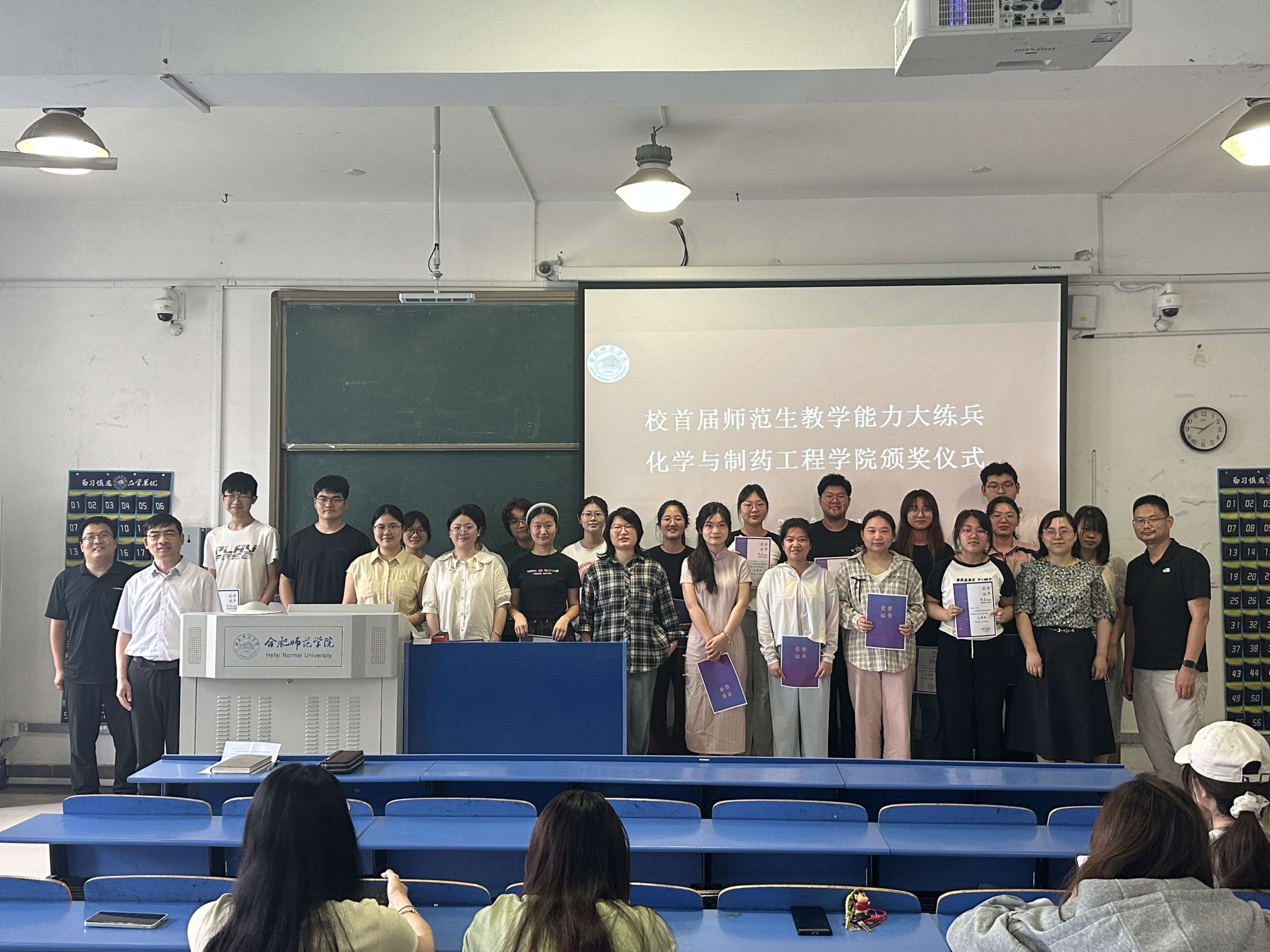 本网讯 为表彰在校级首届师范生教学能力大练兵比赛中表现优异的学子,6月11日,tyc8722太阳集团举办专题表彰活动。副经理董雄辎、化学教育系主任凌波及学科教学论教师方璐、王伟出席颁奖仪式。