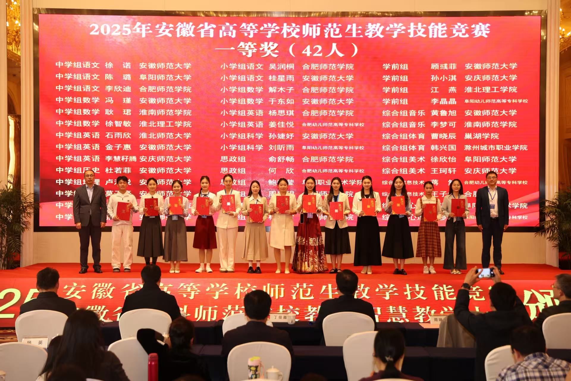 另悉,在月初刚刚结束的安徽省师范生技能竞赛中,冯丽同学稳定发挥,以创新的教学思路、扎实的专业功底和沉稳的临场表现,在全省众多优秀师范生中崭露头角,成功斩获安徽省师范生技能竞赛一等奖。