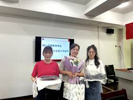 工大附中化学组的教师为每位实习生赠送了一套绣有员工姓名、学号、指导老师姓名的专属学士服,实习生们也为她们的指导老师赠送了鲜花和礼物。最后,实习生和老师们拍照留念。